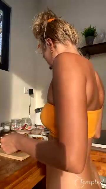 Blonde Hoe Gets Pussy Exposed While Cooking and Eating Without Panties Live Stream Video