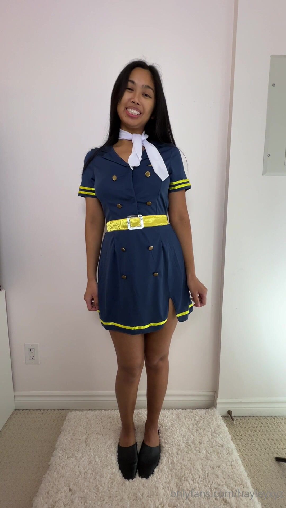 Check out Hayleyxyz dressed as an air hostess getting down and dirty with a stranger, gagging on his thick cock before taking it for a wild ride in this steamy OnlyFans leak.