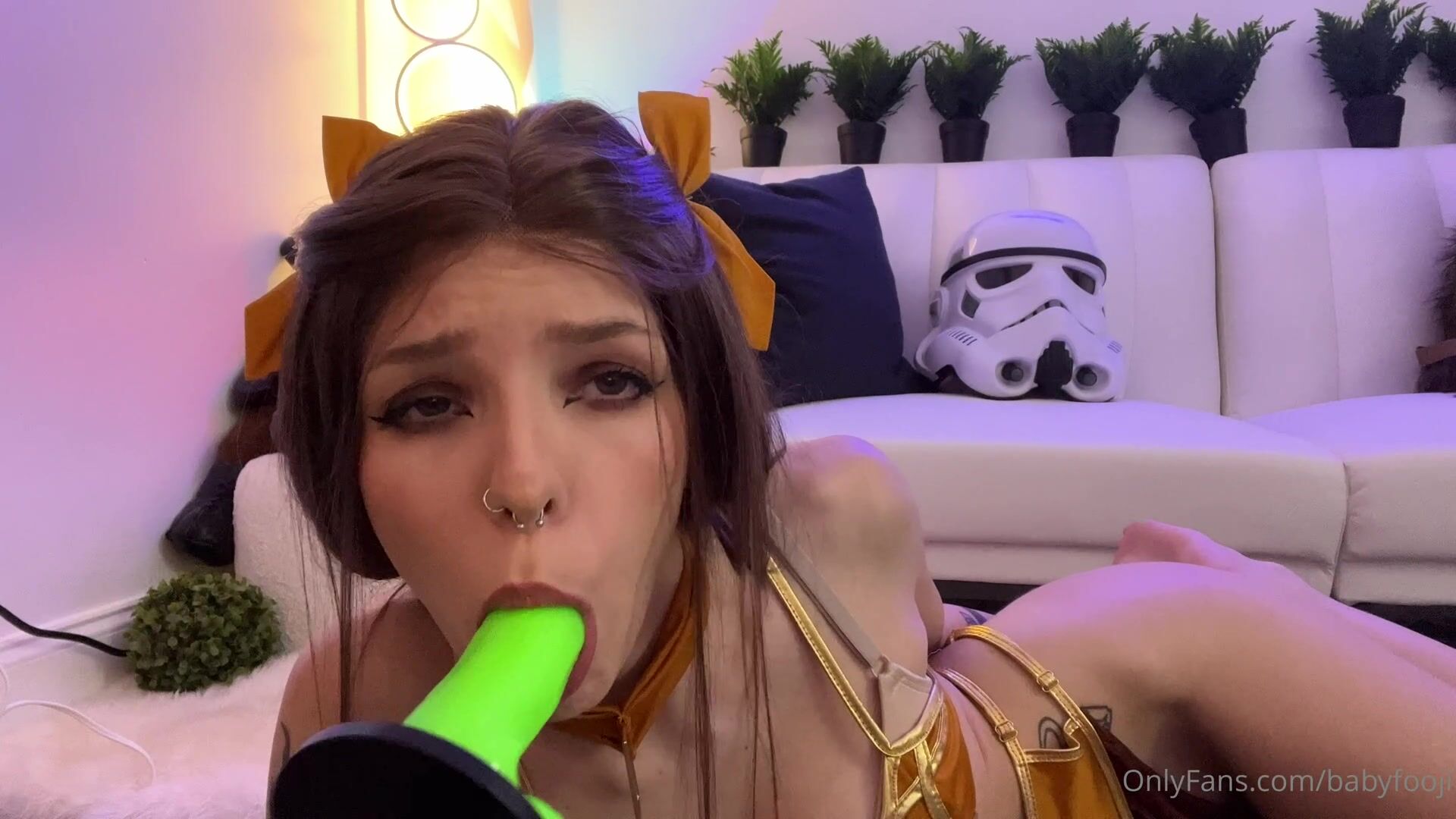 Check out Babyfooji going wild on a big dildo before getting her wet pussy pounded by a relentless fuck machine all while wearing a mouth gag in this intense OnlyFans video seen on ViralPornHub.