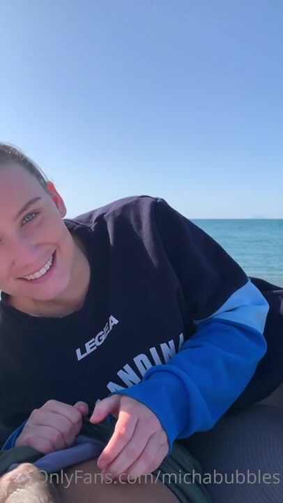 Michabubbles Beach Video where she Teases and Sucks a Massive BBC POV Style