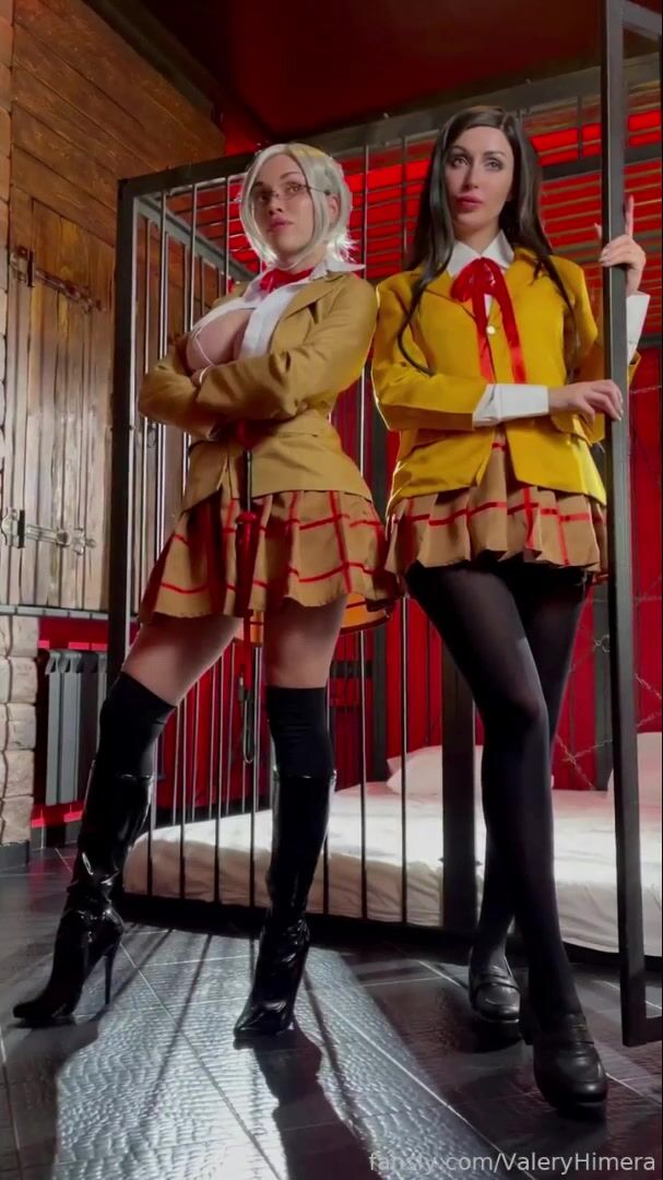 Mari Kurihara (Lera Himera) And Shiraki Meiko (Octokuro) Prison School cosplay big boobs out spanking naught booty.