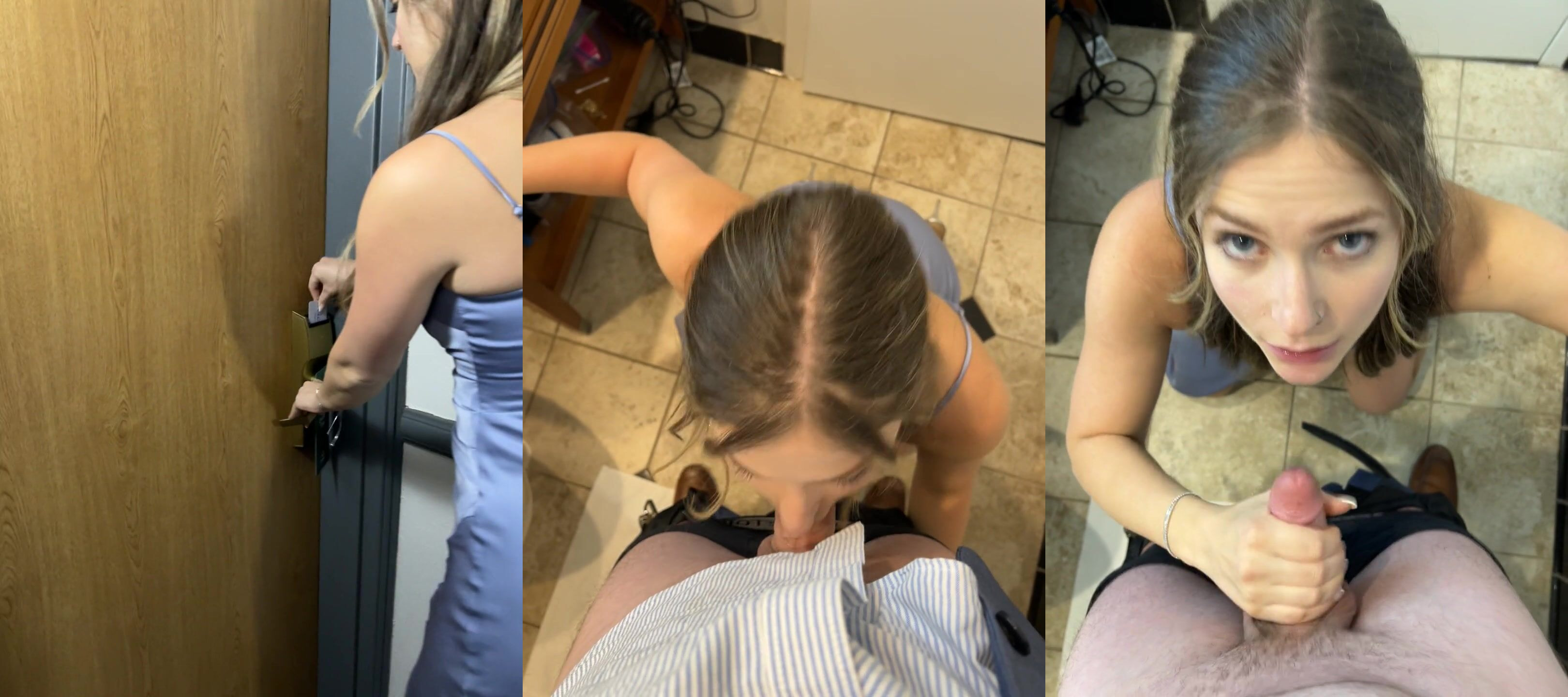 Dressed in her fuck-me bridesmaid outfit, this cock-hungry minx sneaks off from the wedding bash to greedily gobble up a throbbing boner in a hidden, sweaty affair.