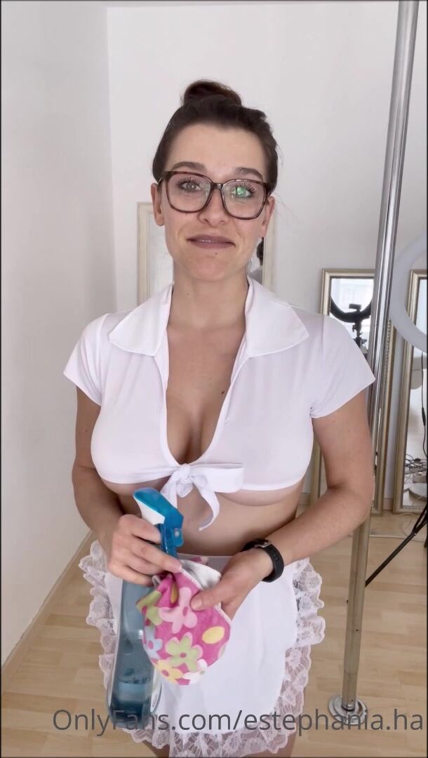 Estephania the sexy maid bares it all in this steamy cleaning tease video