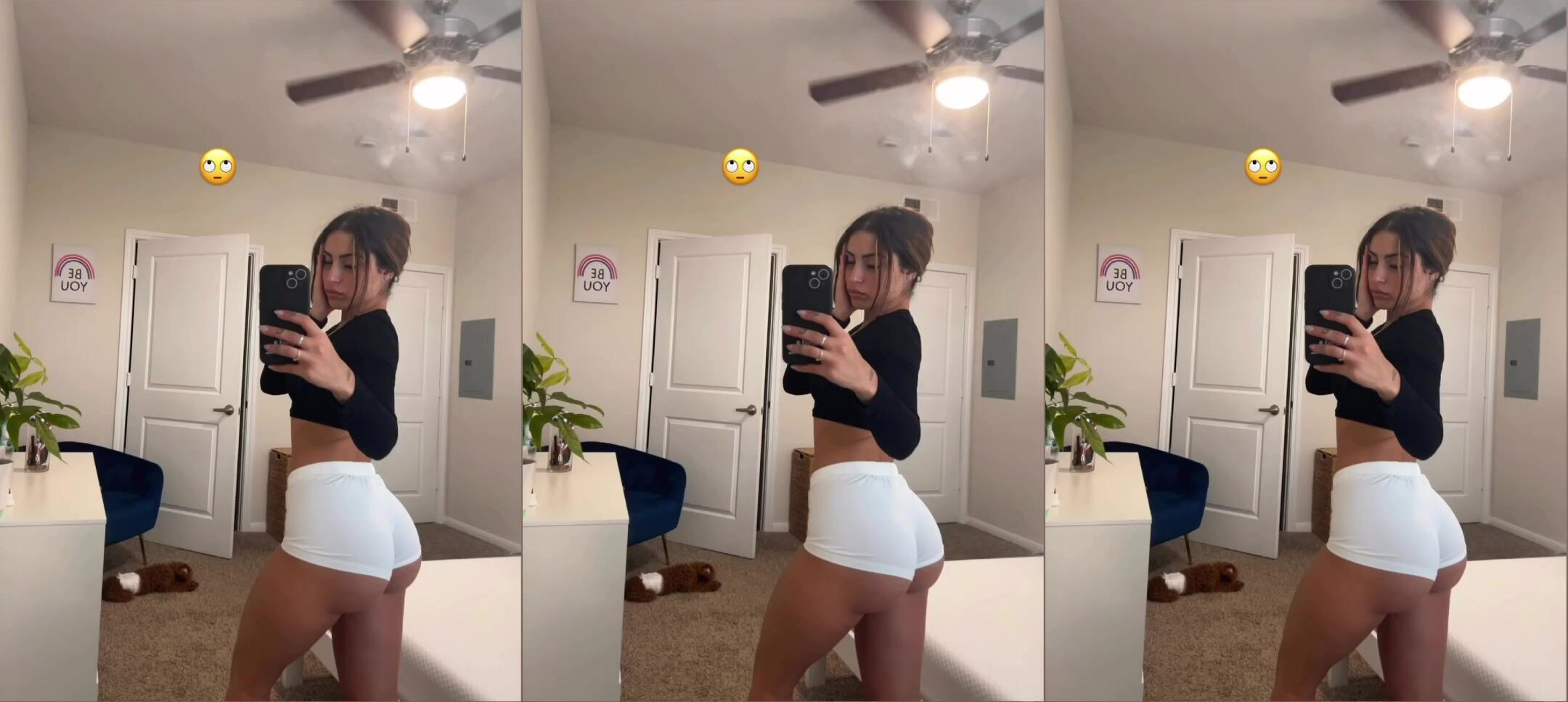 Get ready to drool over this spicy senorita as she snaps a mirror selfie while rocking a black top and white thong. Watch her strike naughty poses on her chair, spreading her long legs and teasing with those insane curves. The cozy bedroom setting makes this video perfect for lovers of intimate, up-close action.