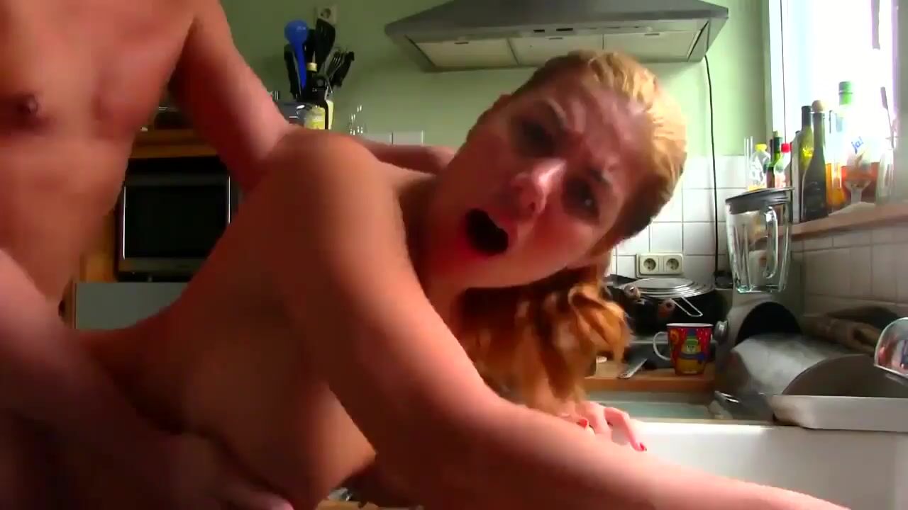 Blonde BKEBlO2B gets her shaved pussy pounded on the kitchen counter in this intense fucking video