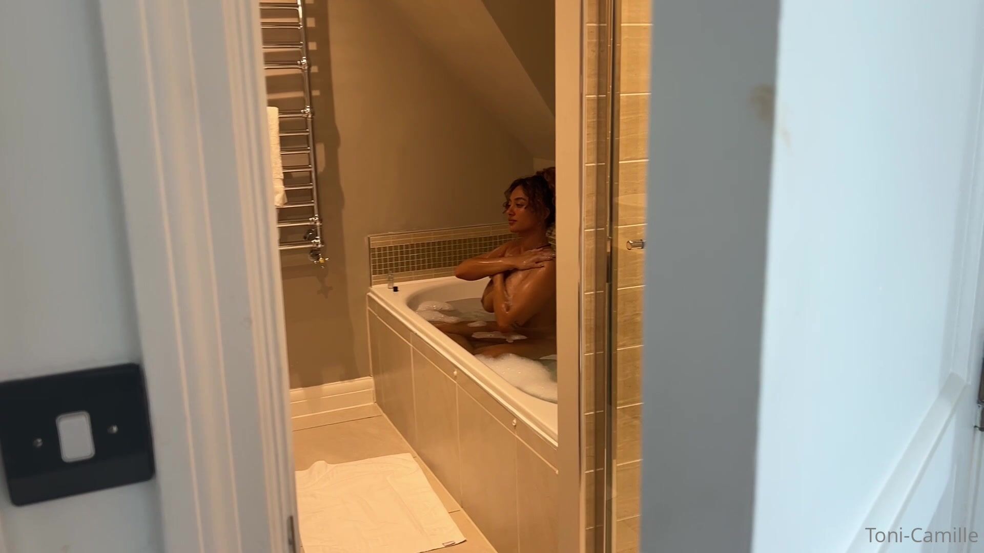 Curvy Toni Camille gets naughty in the bathtub and bedroom in this intimate video, teasing with her perfect ass and pussy while enjoying solo and partnered pleasure.