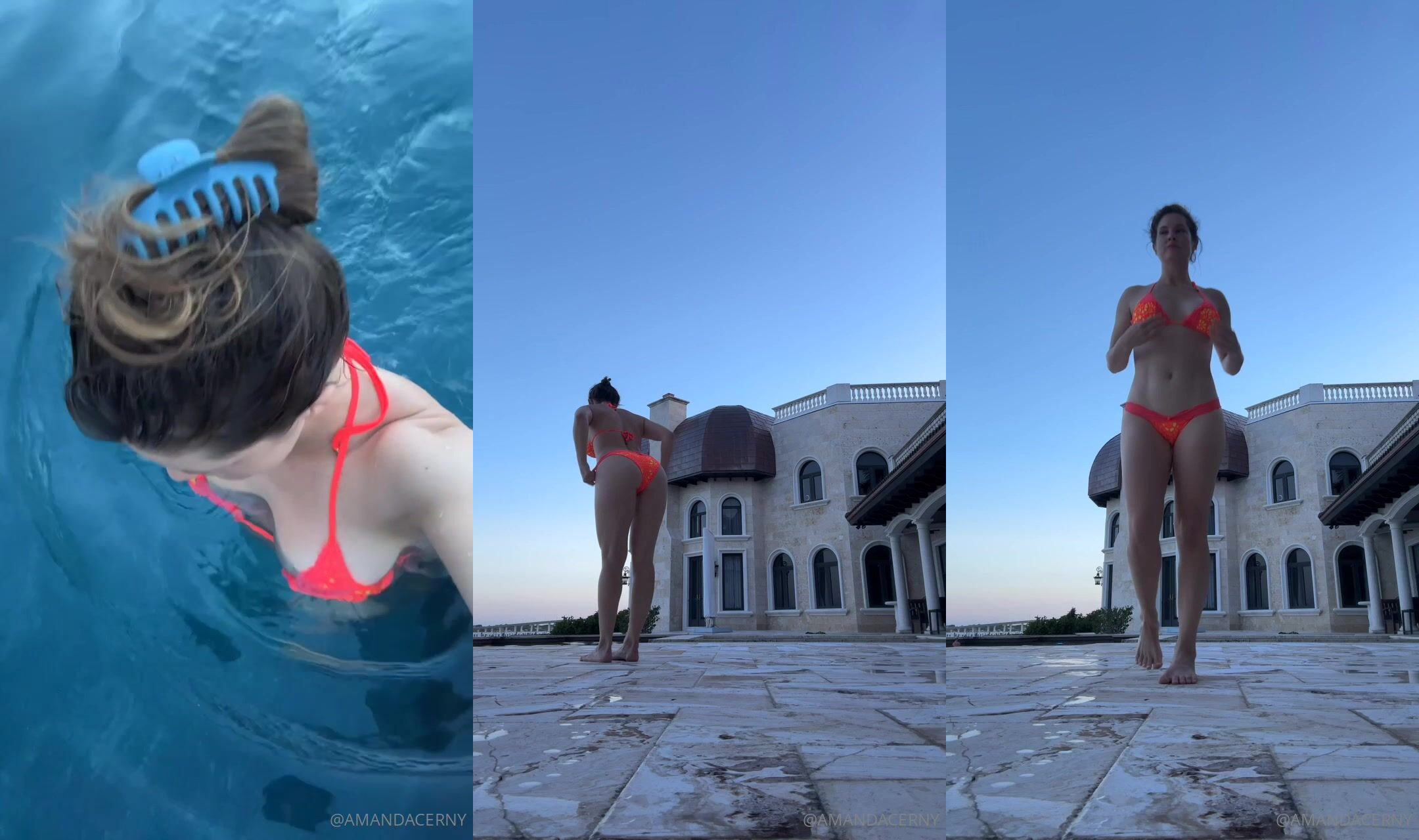 Amanda Cerny shows her fit babe body in a red bikini while playing poolside in this seductive video.