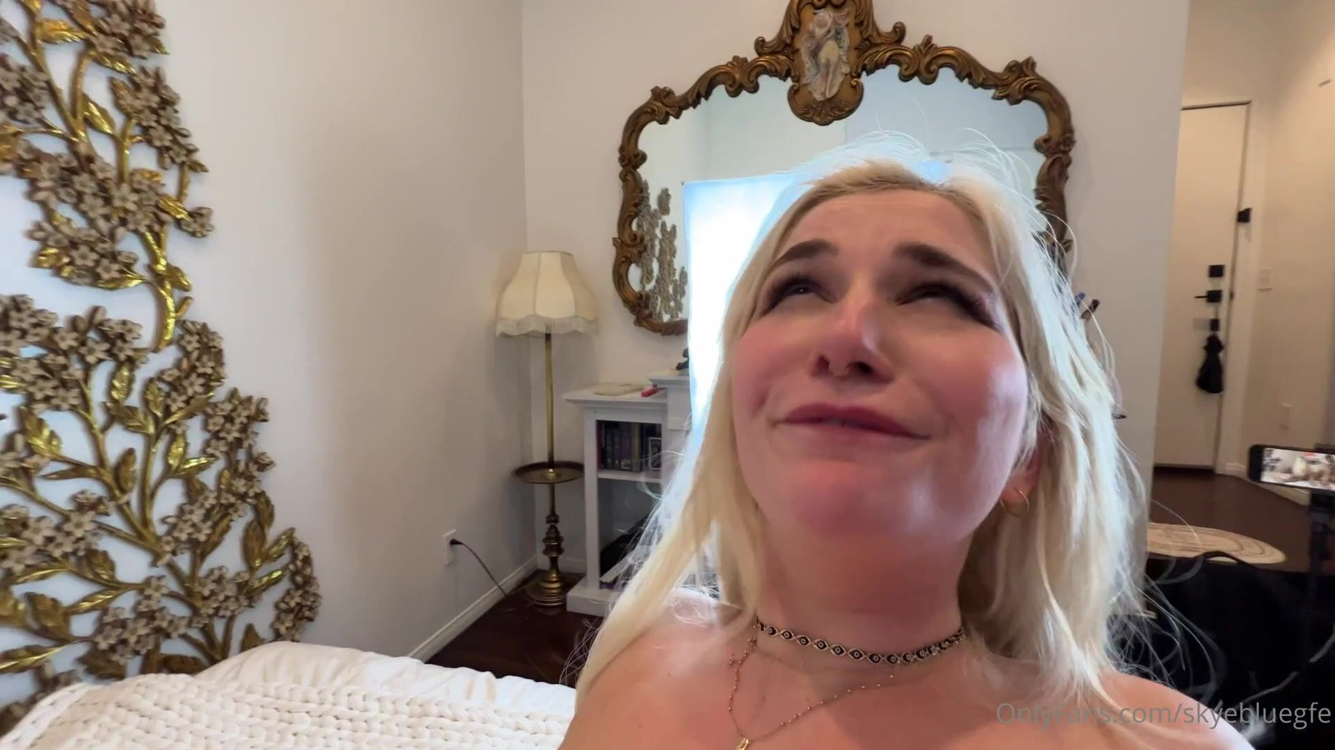 Blonde bombshell SkyeBlue gets naughty in this intense threesome video. Watch her suck while getting pounded hard in a steamy bedroom session.