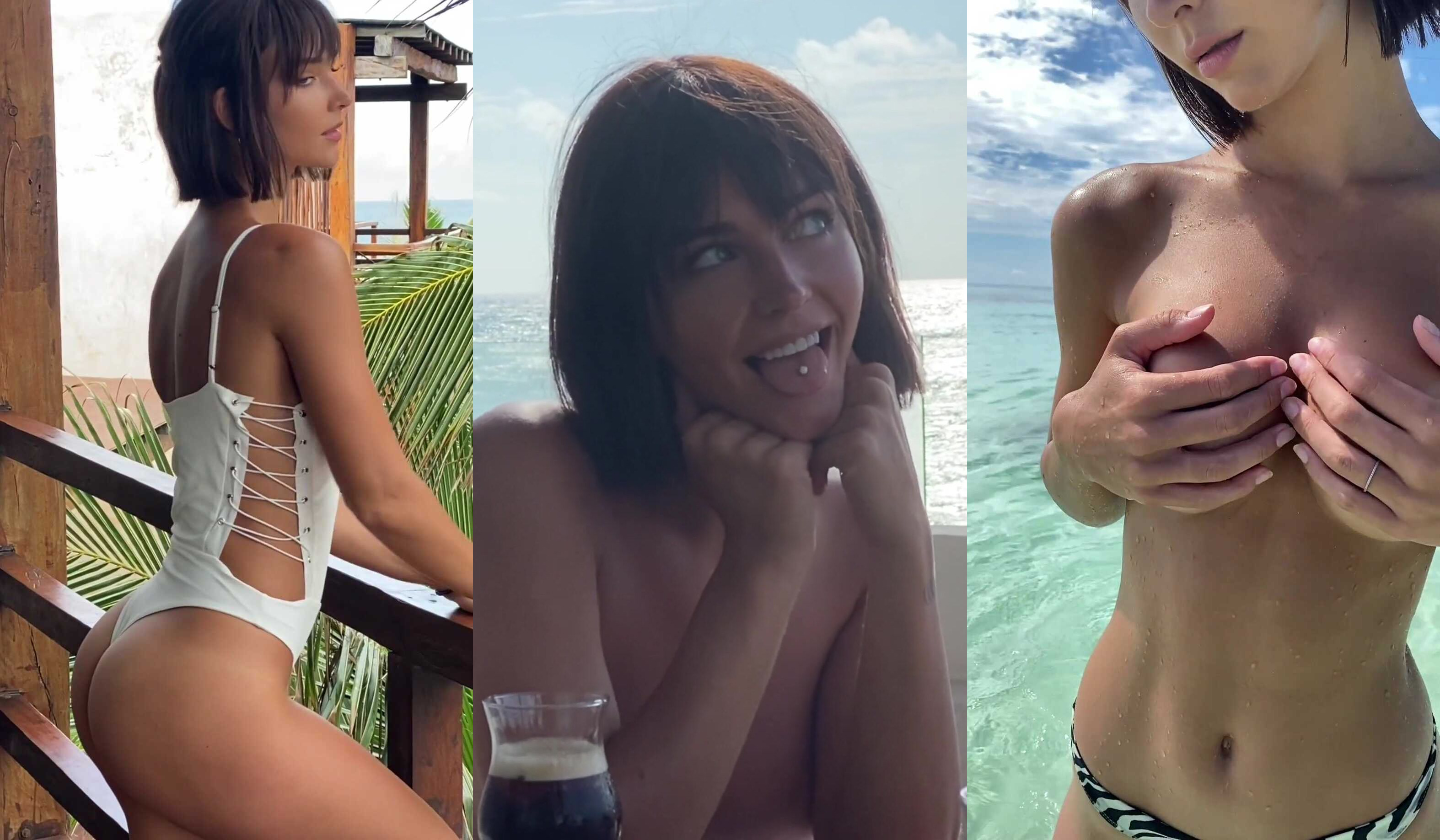 Rachel Cook Teases In White Swimsuit Before Showing Off Perfect Tits By The Ocean