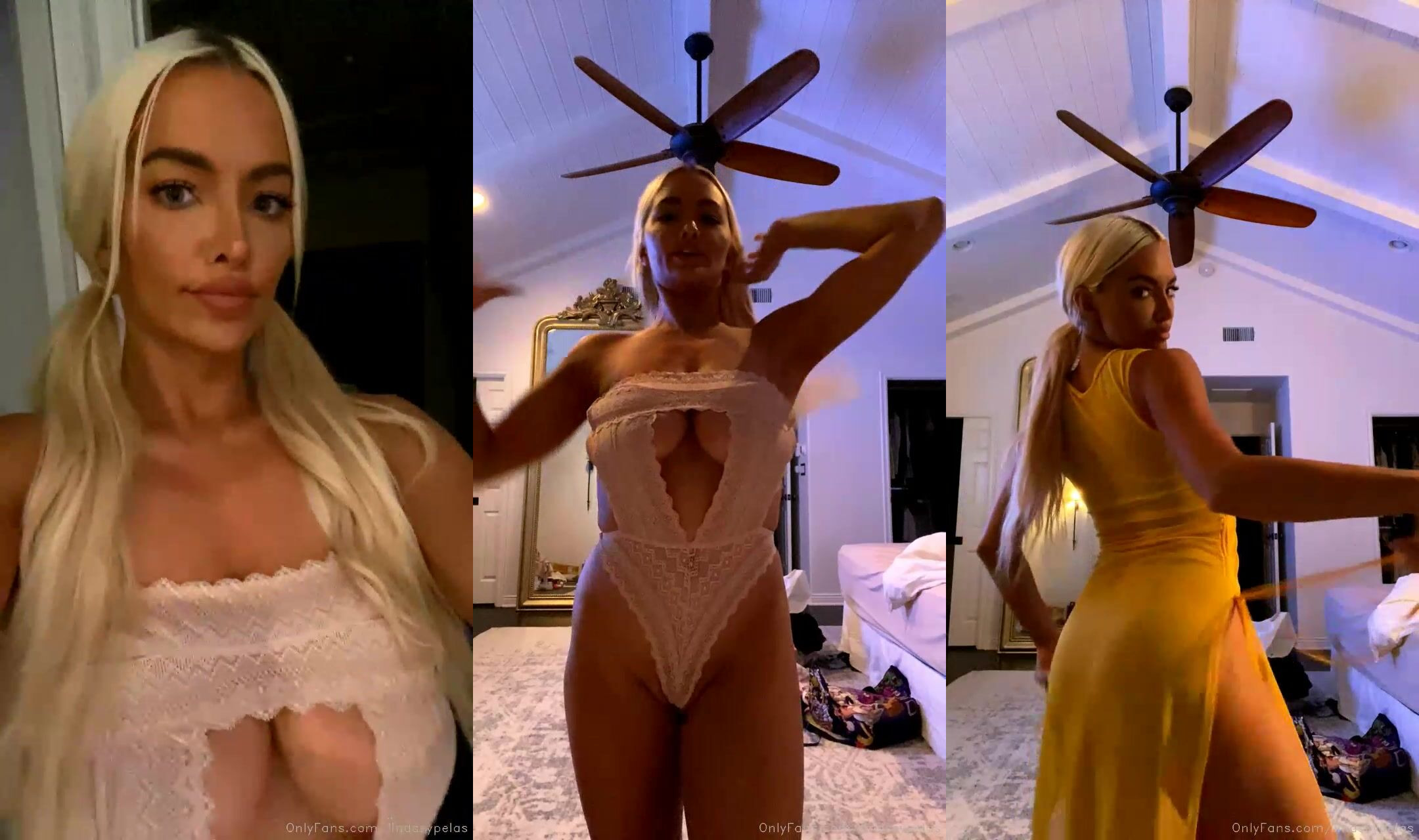 Lindsey Pelas Sizzles in White Lingerie and Yellow Dress in Bedroom Tease OnlyFans Video
