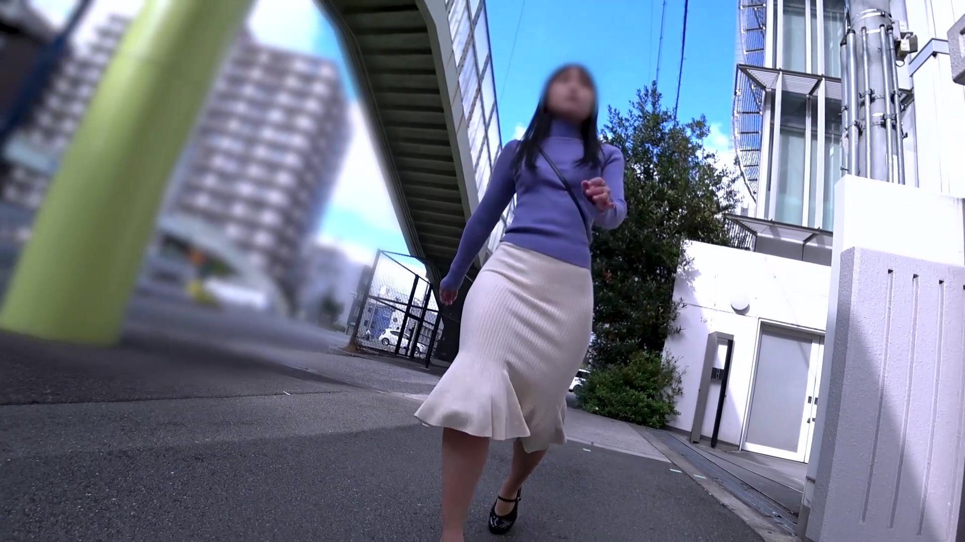 Petite Asian cutie teasing in public as she walks in her tight skirt in this FC2 video.