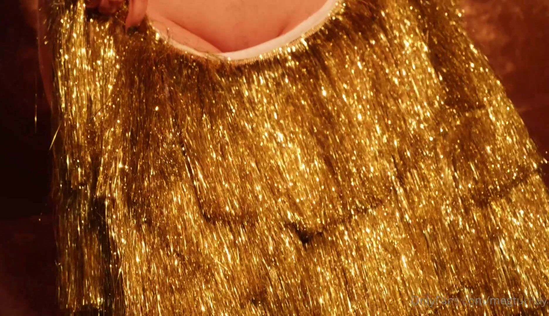 Meg Turney Teases With Stockings And Shows Her Ass While Wearing Gold Tinsel Jacket