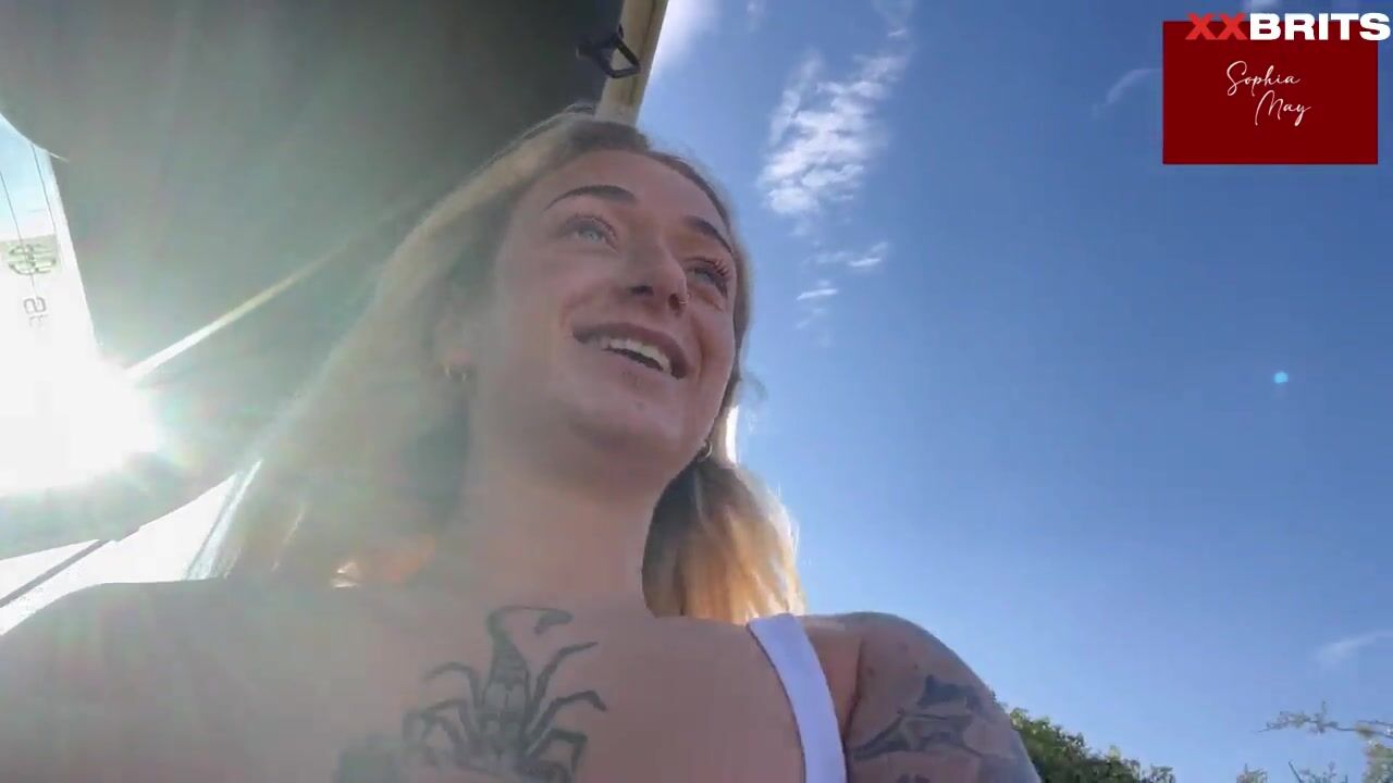 Blonde Sophia May gets her tits and pussy fucked in a sunny outdoor car ride with video.