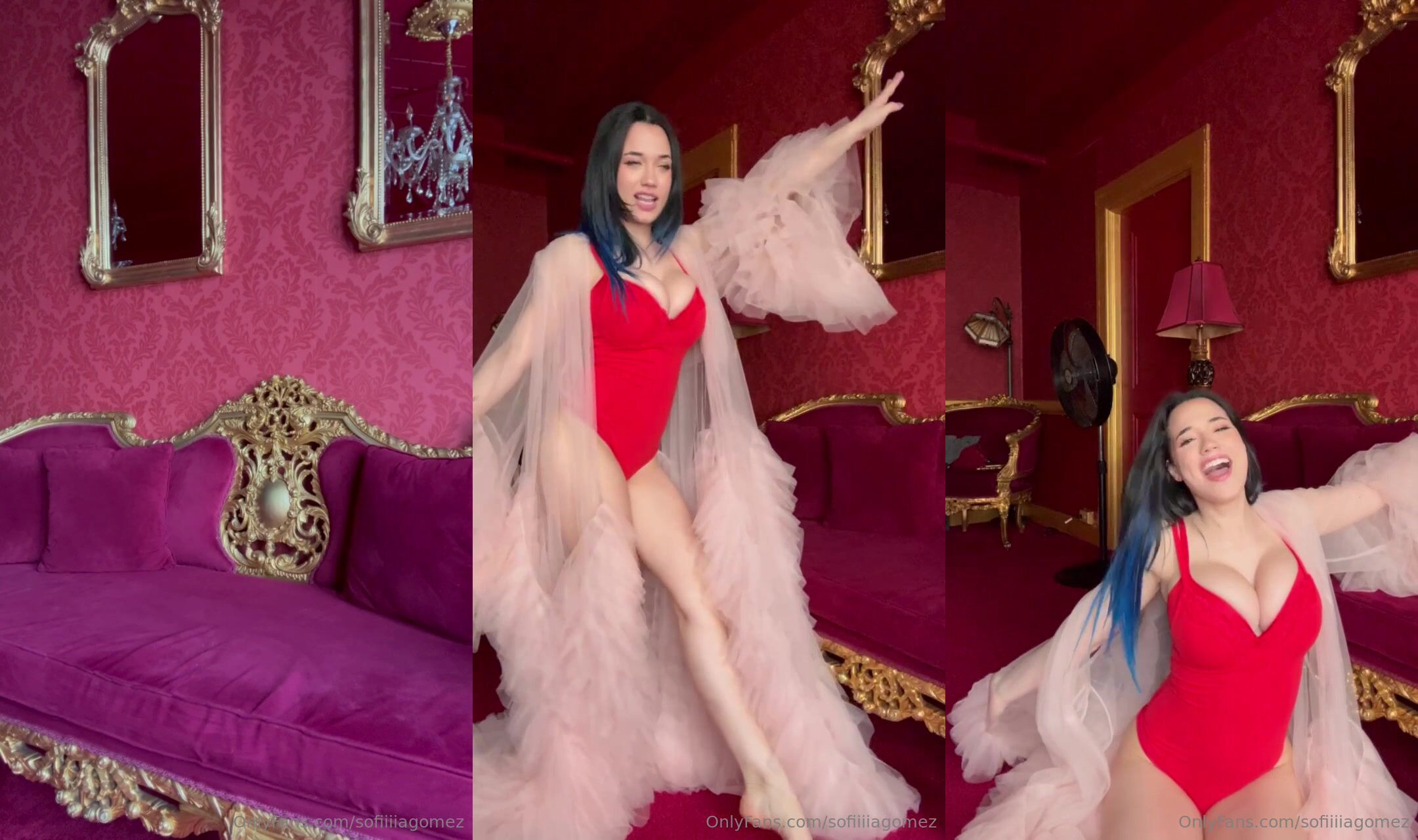 Sofiiiagomez Gets Playful In Red Lingerie And Sheer Robe In Luxury Room