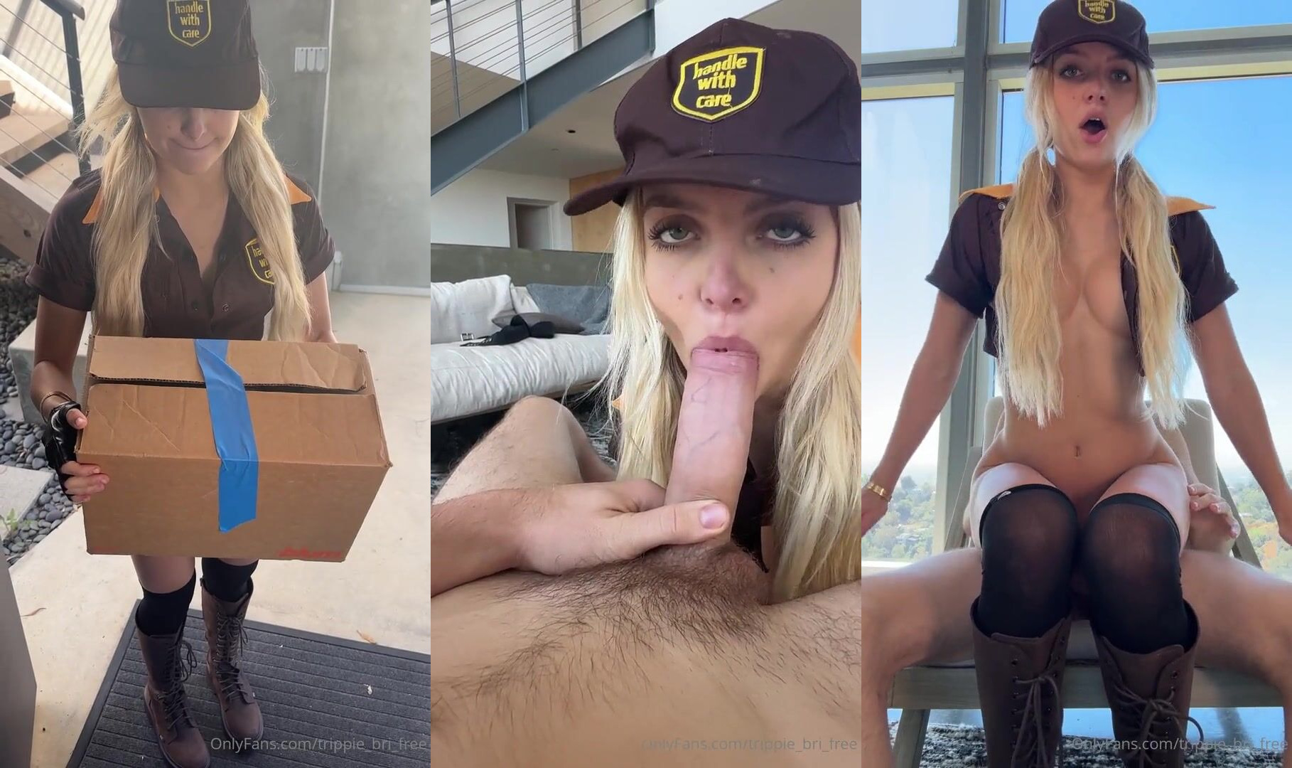 Check out Trippie Bri getting down and dirty in her delivery girl uniform, ending with a messy creampie in this leaked sex video that'll leave you wanting more.