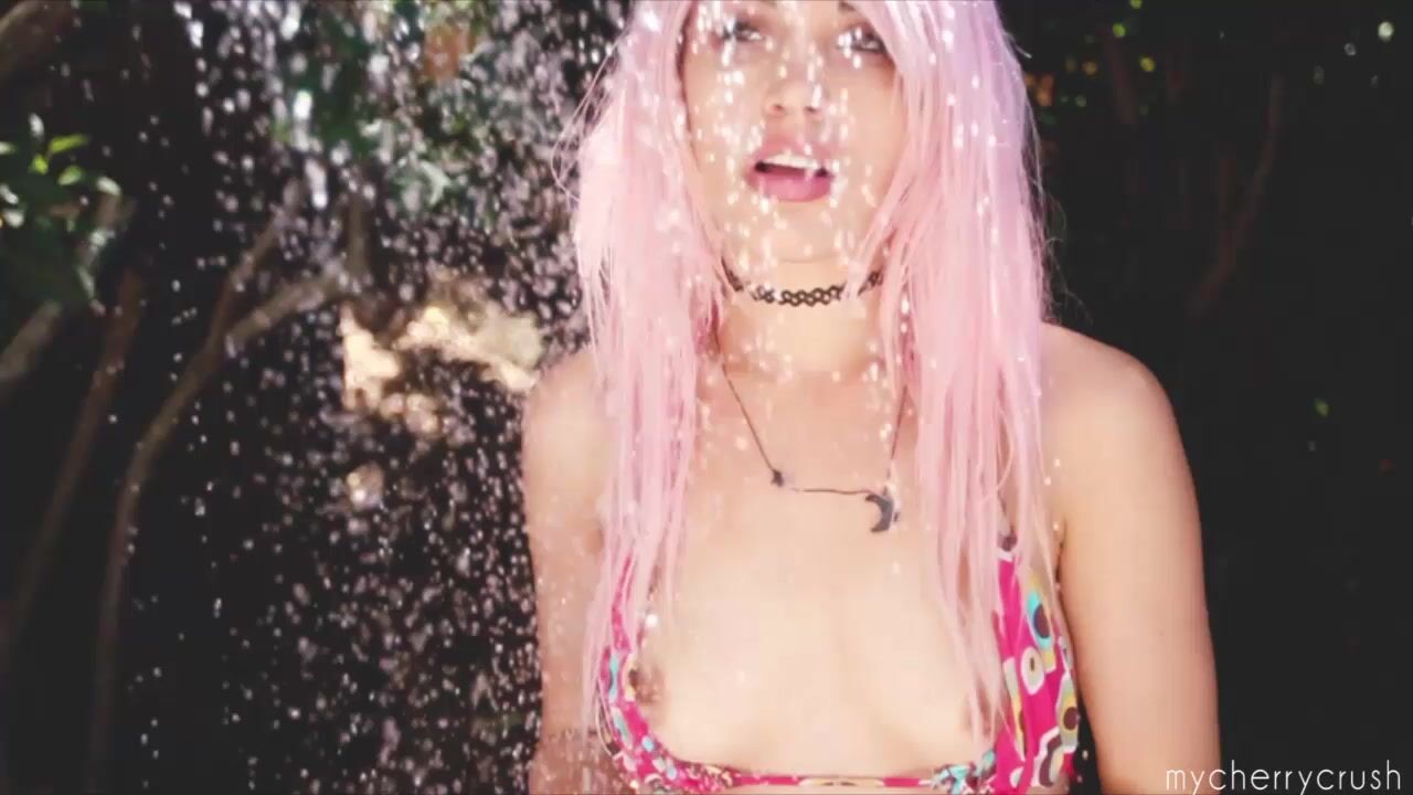 Dive into this steamy outdoor shower video with the irresistible MyCherryCrush as she teases under the cascading water, her pink hair and curves glistening in the sunlight.