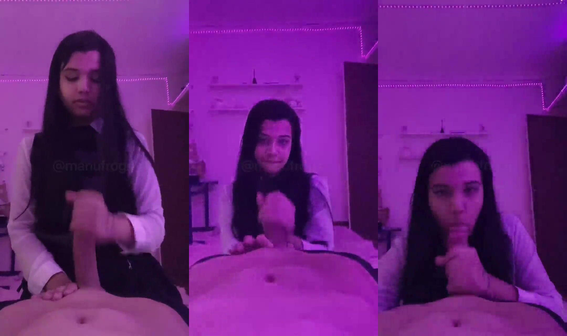 Petite Cutie ManuDropp gets naughty in this bedroom tease video showing off her Blowjob skill While Tease huge dick in a seductive performance.