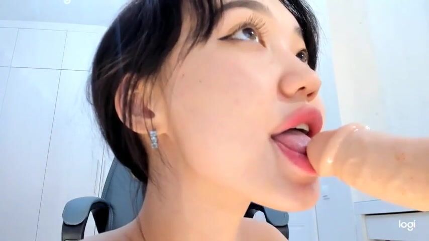 Asian Petite Cutie Giving Sloppy Blowjob To A Dildo And Playing With Her Tiny Tits In POV Video