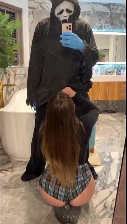 See Katiana Kay getting downright dirty in her Ghostface costume as she films a naughty cosplay sextape for her OnlyFans