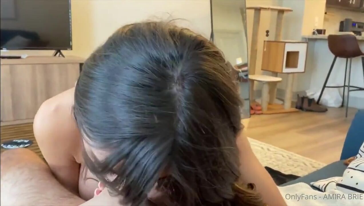 Curvy OnlyFans goddess AMIRA Brie starts with a sloppy deepthroat, then slides her juicy ass onto rock-hard cock for intense POV fucking.