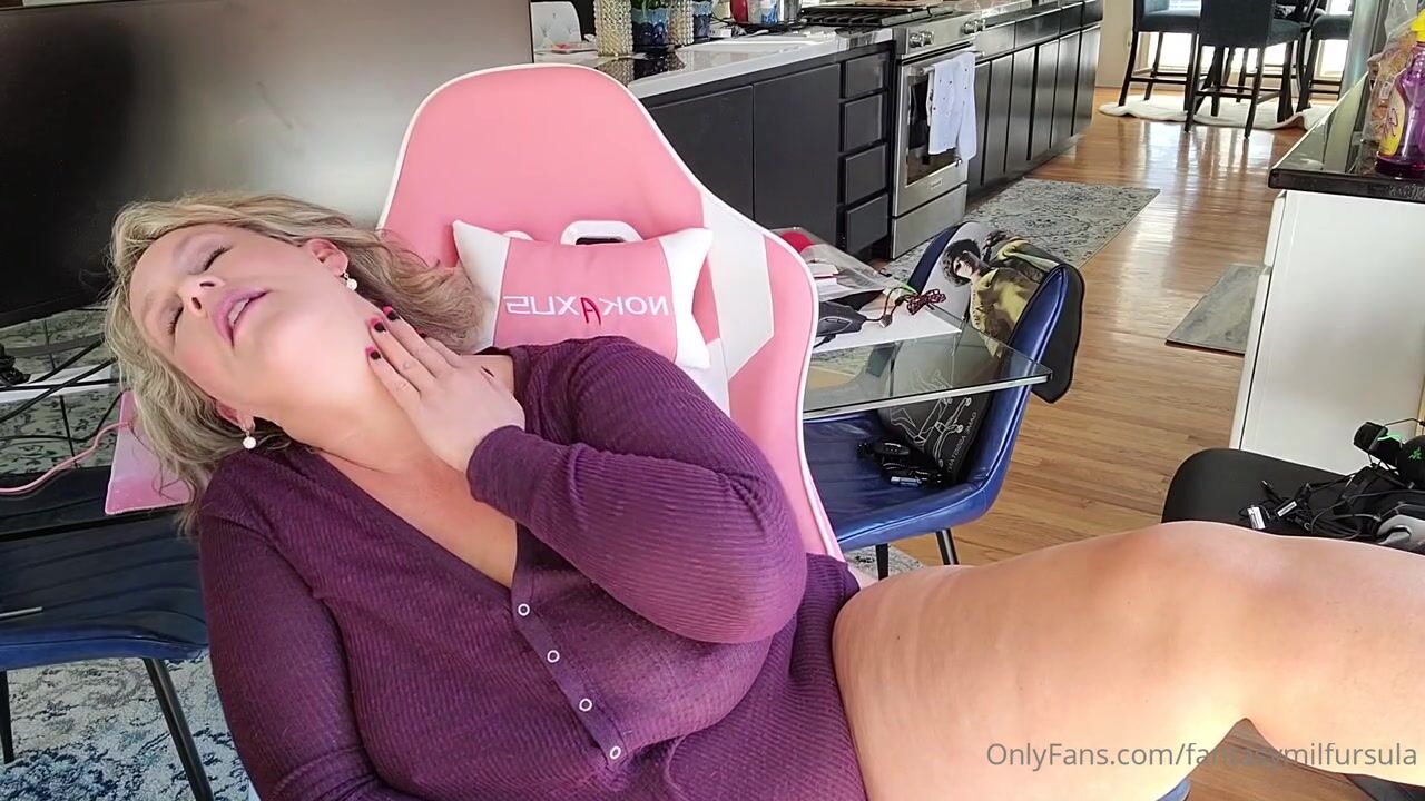 Check out fantasymilfursula getting naughty in her office chair, spreading her juicy pussy wide and putting those thick thighs on full display for a steamy tease you won't want to miss.
