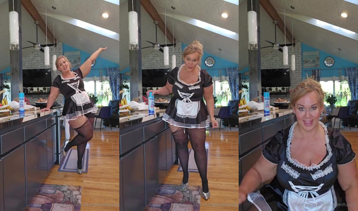 Ursula Andreia aka fantasymilfursula Dressed as a Sexy Maid Teasing her Curves in Black Stockings Exclusive OnlyFans Video