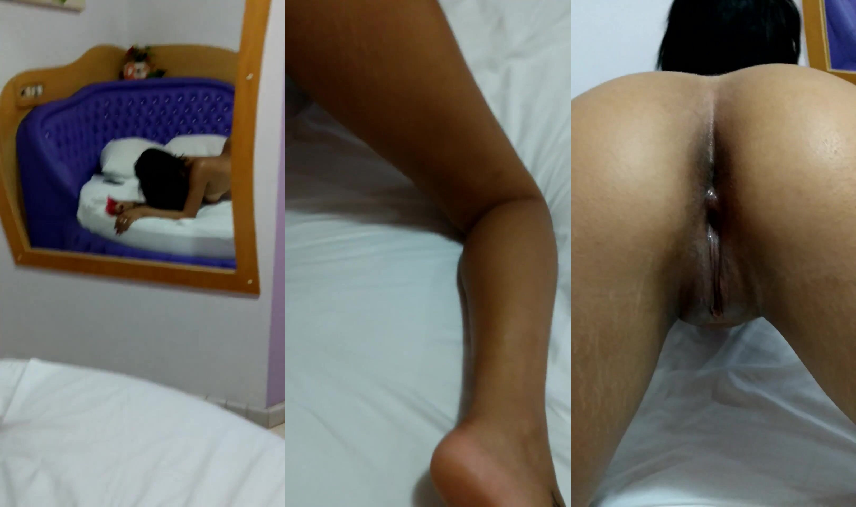 BrunetteBeauty4U spreads wide teasing her dripping wet pussy in a sleazy motel fuckfest video