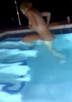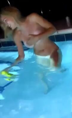 Check this Sexy Tape of unhinged young jumps into pool topless and only seen on ViralPornhub.